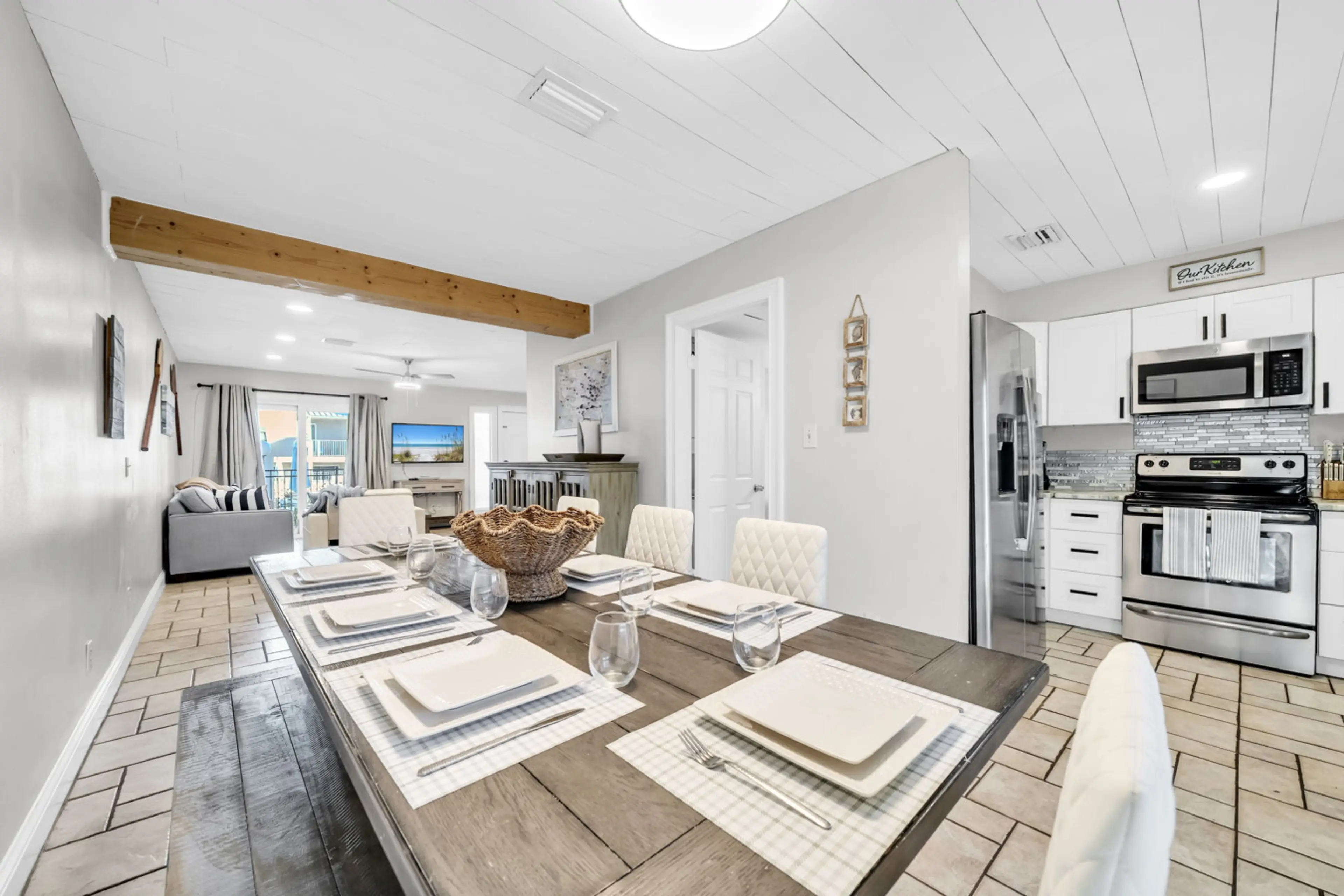 The location is phenomenal. So close to the beach & private beach access is convenient. The house was clean and checkin was easy which gives this property the positive review. However, a few things to note for potential guests/things that would have improved our stay.1. Supplies in the home were limited compared to other vrbos. No hand soap at sinks, we ran out of trash bags and toilet paper quickly, and no spices (not even salt). The checkin instructions mentioned we could contact if needed, but on a vacation, we'd rather not coordinate and have it stocked to start.2. The bunk mattresses are not comfortable, and the top bunk has no railing which didn't feel safe to have someone sleep up there.3. Parking is limited, and the welcome guide mentions a location to pay to park additional cars, but it is only open specific hours which would be nice to note.Overall, the cleanliness and location of the property were great, but room for improvement on comfort.